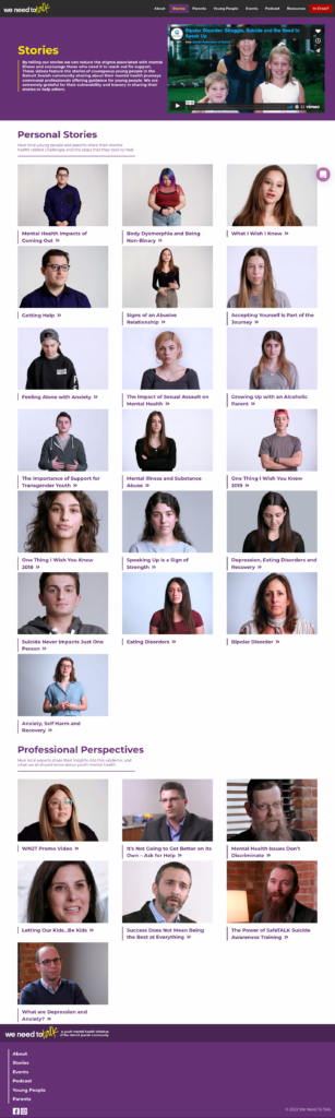 The videos were key to this project as well. It’s important that teens see themselves in these stories and that they see figures of authority telling them that it’s okay to feel how they do. A huge part of this work is simple validation. People are super isolated these days, especially teens. And that means that these teens don’t know that others feel the same ways they do. And they don’t always know where to reach out for help. Or that help is even available. Some don’t know that it’s not a sign of weakness to ask for help, but instead a sign of strength and wisdom. That’s what we’re trying to do with WN2T.