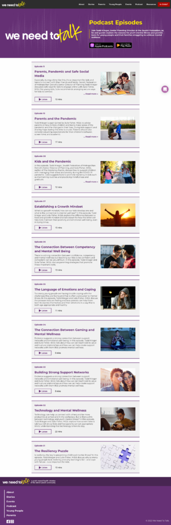 Life as a teen can be difficult at the best of times. I remember, it wasn’t that long ago. Only like ten years really. So when this project came up at JFMD, I was excited to take it on. We Need to Talk (WN2T) is a program run by Jewish Family Services with support from JFMD to help teens throughout the Detroit Jewish Community by increasing awareness of mental illness, reducing stigma, and improving access to services. They hold events, release videos, publish articles for parents and students, and make resources available.